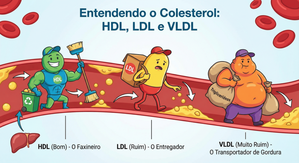 Quando fazemos exame de sangue, não medimos apenas “colesterol”. Medimos lipoproteínas — partículas que transportam gordura na corrente sanguínea.
