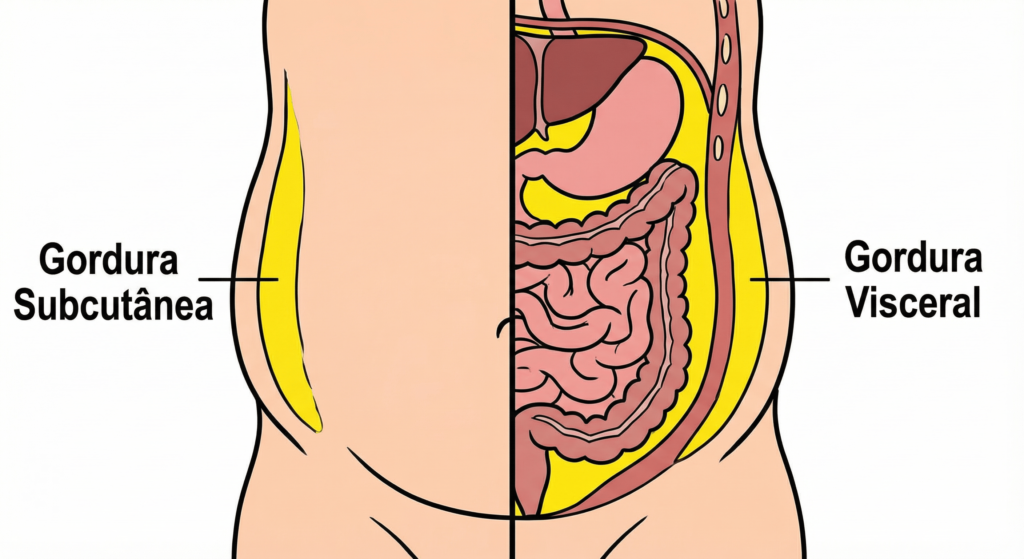 Um conceito fundamental é a gordura visceral — aquela que se acumula ao redor dos órgãos, especialmente na região abdominal.